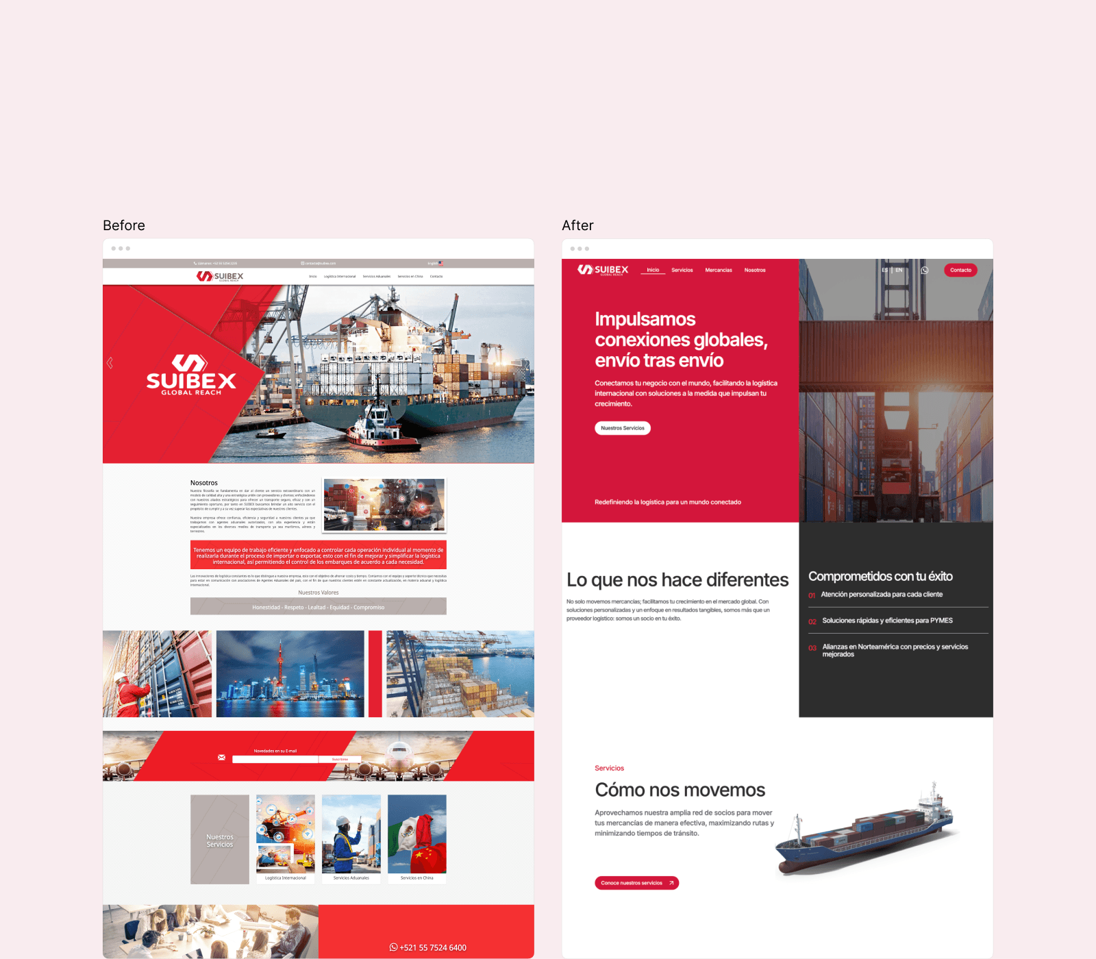 The previous website was outdated and did not accurately reflect the company’s expertise, credibility, or global reach. It lacked modern design principles, clear service communication, and SEO optimization, limiting its ability to attract and engage potential clients. To remain competitive in the fast-moving logistics industry, SUIBEX required a complete website redesign that enhanced usability, performance, and visibility.