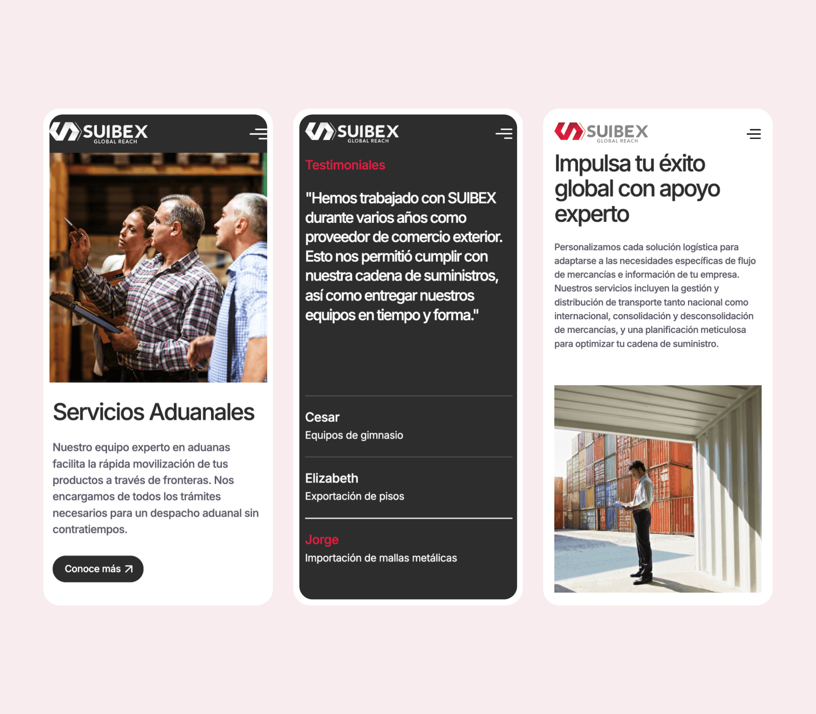This project went beyond aesthetics or usability, it required a deep understanding of the logistics sector to communicate SUIBEX’s value effectively. I allocated time to learn about industry-specific terminology, container operations, customs procedures, and the end-to-end logistics process. This foundational knowledge allowed me to craft a content structure and visual language that felt familiar and trustworthy to logistics professionals, while remaining clear and accessible to new clients. The result was a strategic redesign that not only looked modern, but spoke the language of the industry.